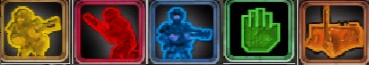2段目の右から1つ目はそのユニットが基本射撃モードか格闘モードかを指定できます。これはユニットの生産時に得意な方をデフォルトで設定されていますが、スペースマリーンやコマンダーなど、どちらも得意な場合は切り替えることで戦略を変えることが出来ます。