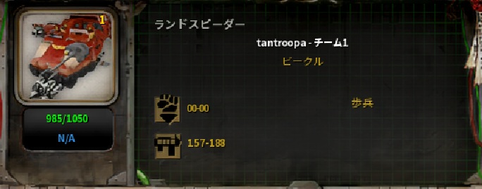 次はランドスピーダーです。見方は同じですが、ビーグルには基本モラルがありません。一部歩兵ユニットもモラルがないものがあります。