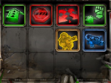 一番上の列では、左上から順に移動、停止、移動攻撃、移動近接攻撃の4つがあります。近接攻撃がないユニットは左側3つしかありません。